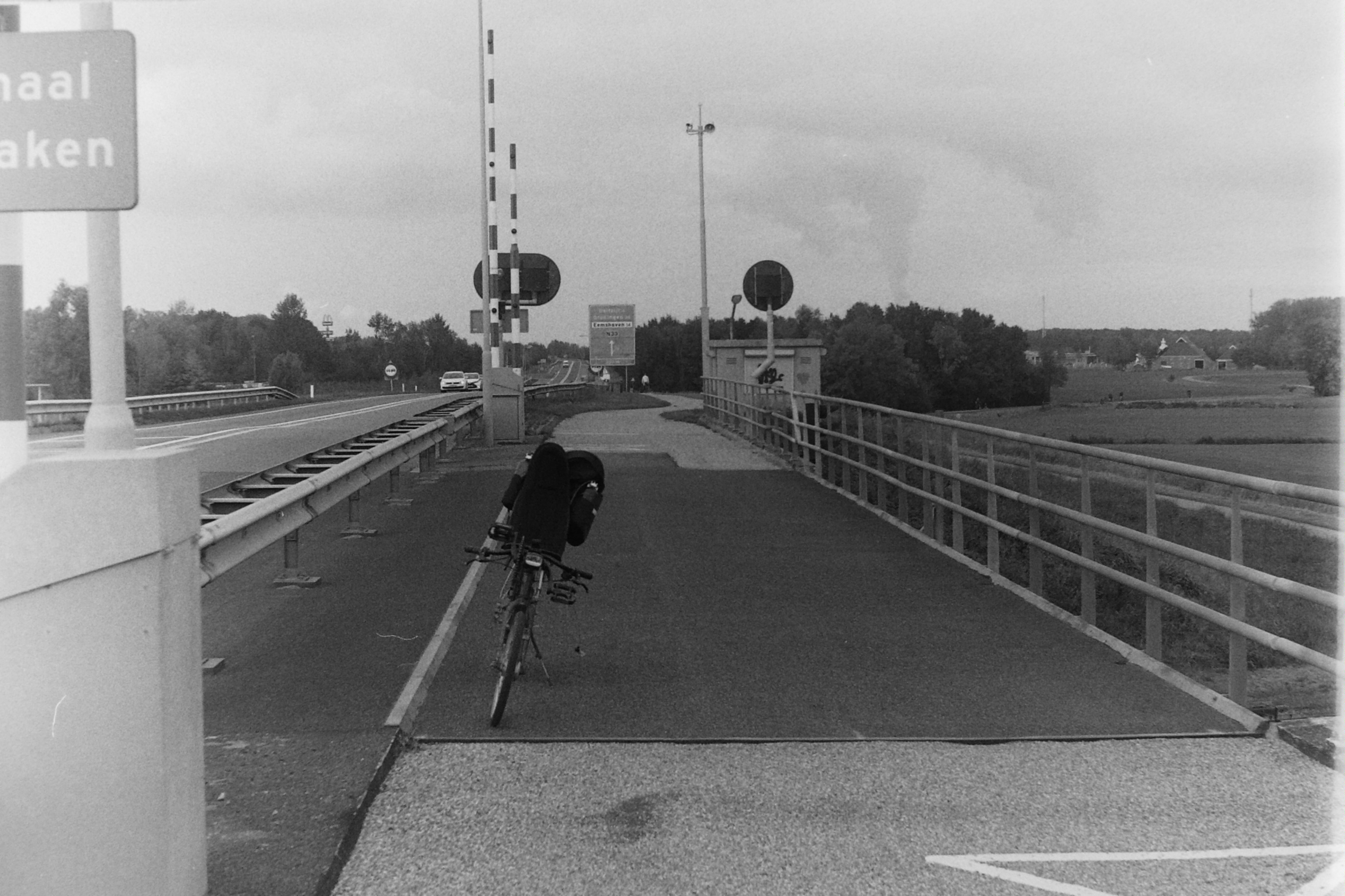 35 mm, analog, Appingedam, brug, cycling, fietsen, filmphotography, Ilford FP4 125 ISO, Liegerad, ligfiets, recumbent, recumbent bicycle, Zenit 3M, Zwart/wit- Albums