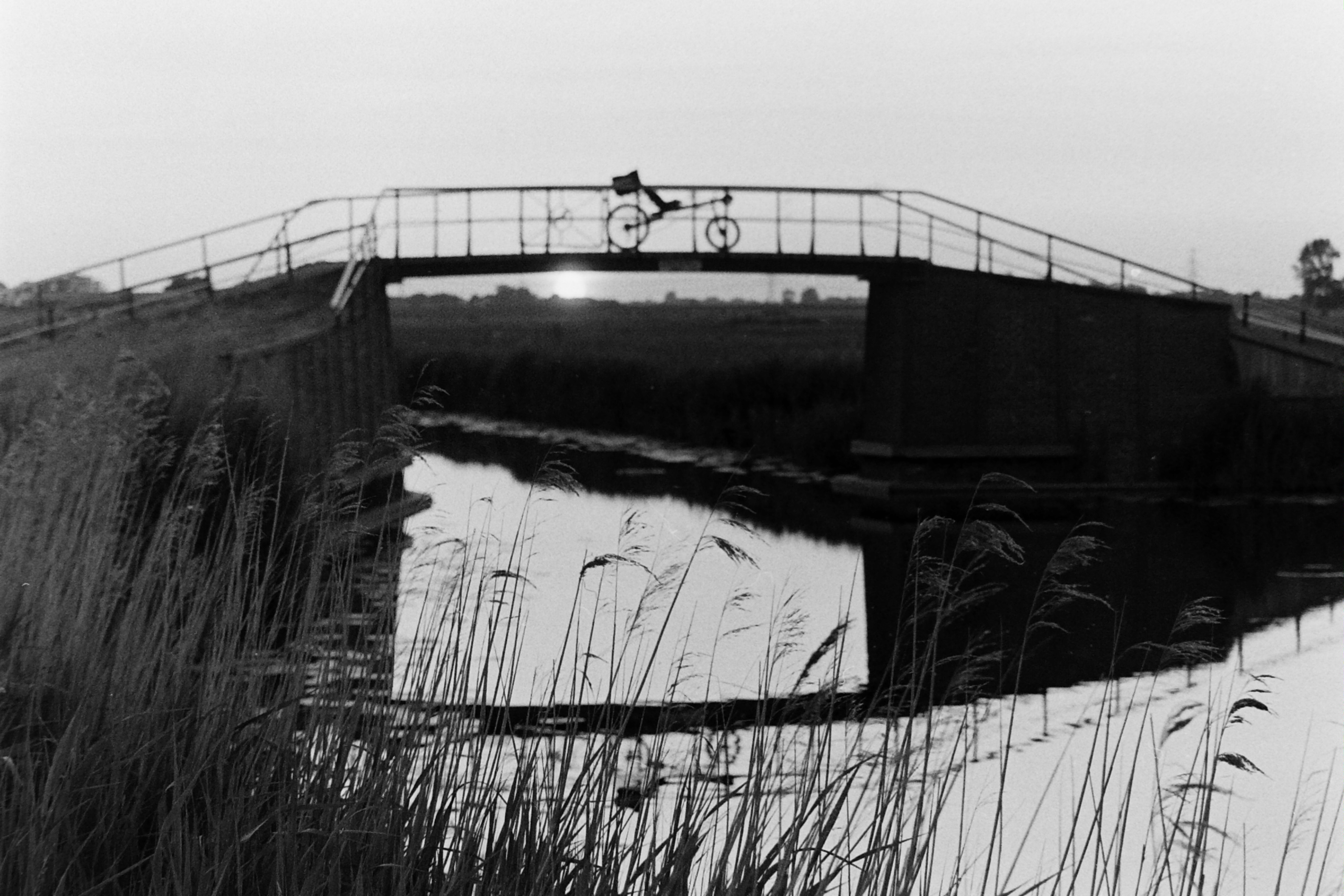 analog, Canon Eos 300, fietsen, fietspad, filmphotography, Ilford HP5 Plus 400, Liegerad, ligfiets, recumbent, recumbent bicycle, water, Westerwijtwerder Maar, zonsondergang, Zwart/wit- Albums