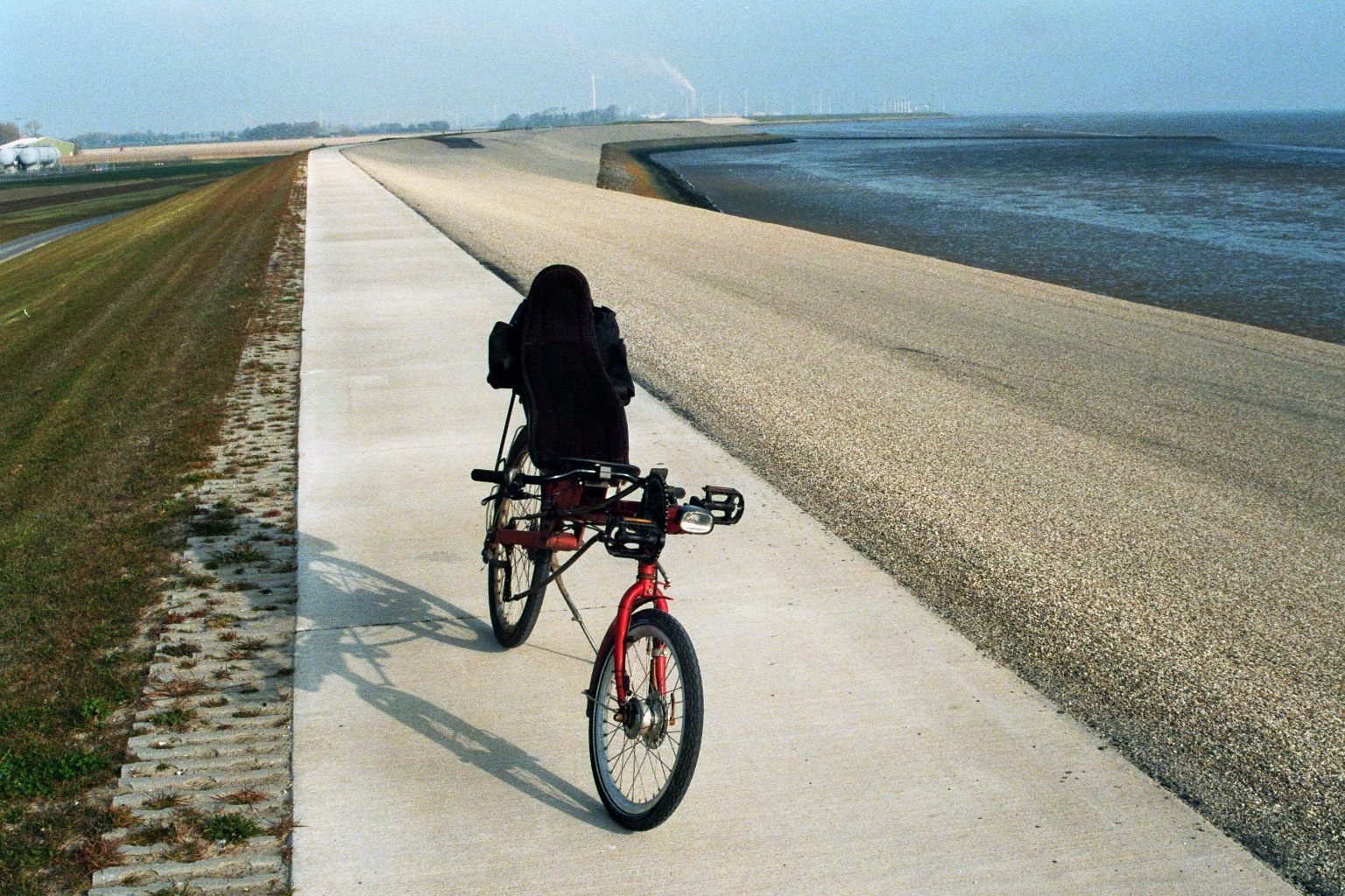 35 mm, analog, Canon Eos 3000, dijk, dike, eems, fiets, fietsen, fietspad, filmphotography, Kodak Gold 400 ISO, Liegerad, ligfiets, recumbent, recumbent bicycle, waddengebied, waddenzee- Albums