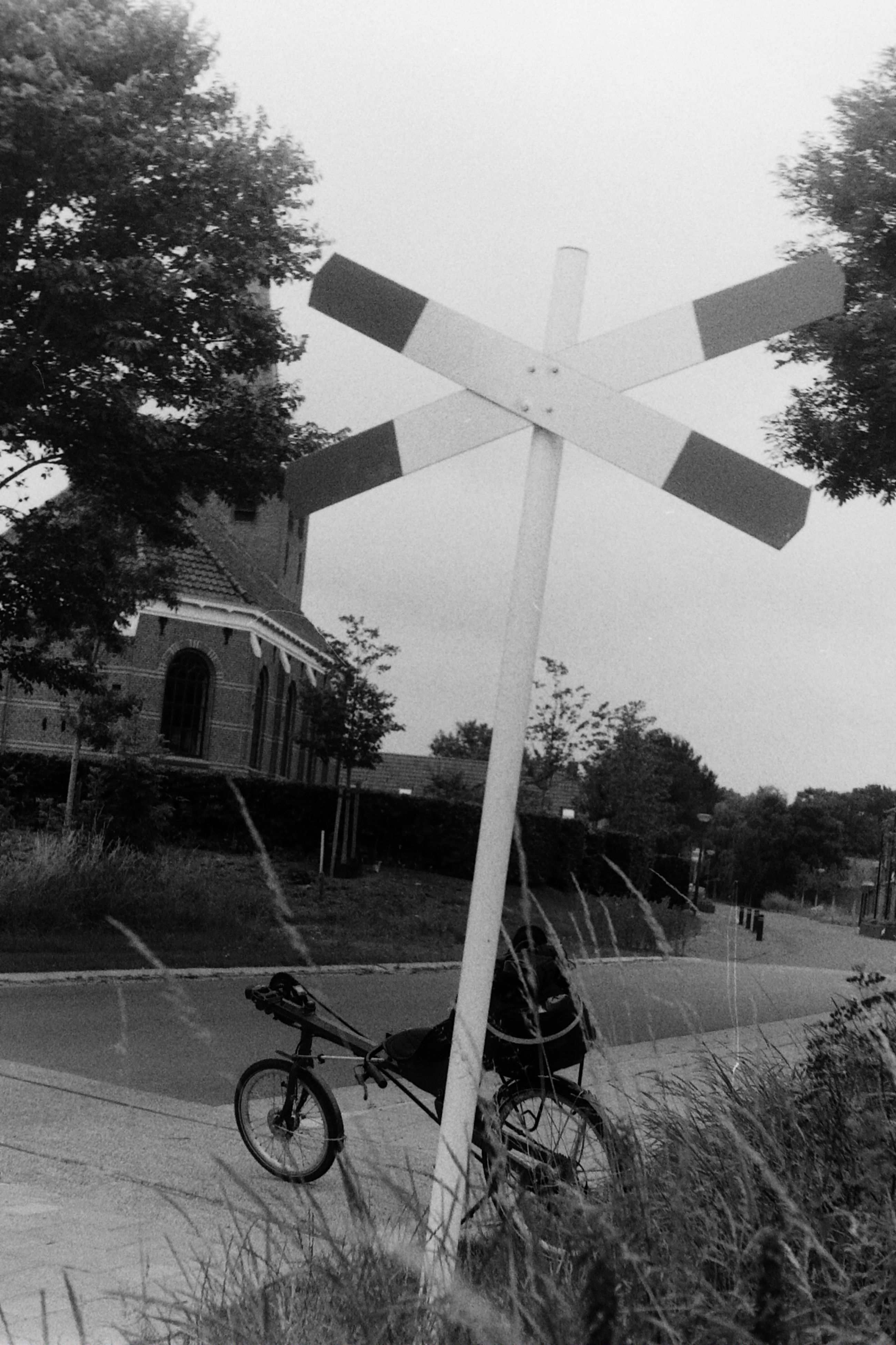 analog, filmphotography, Ilford FP4 125 ISO, kerk, Liegerad, ligfiets, recumbent, recumbent bicycle, stoomtram, Zenit 3M, Zwart/wit- Albums