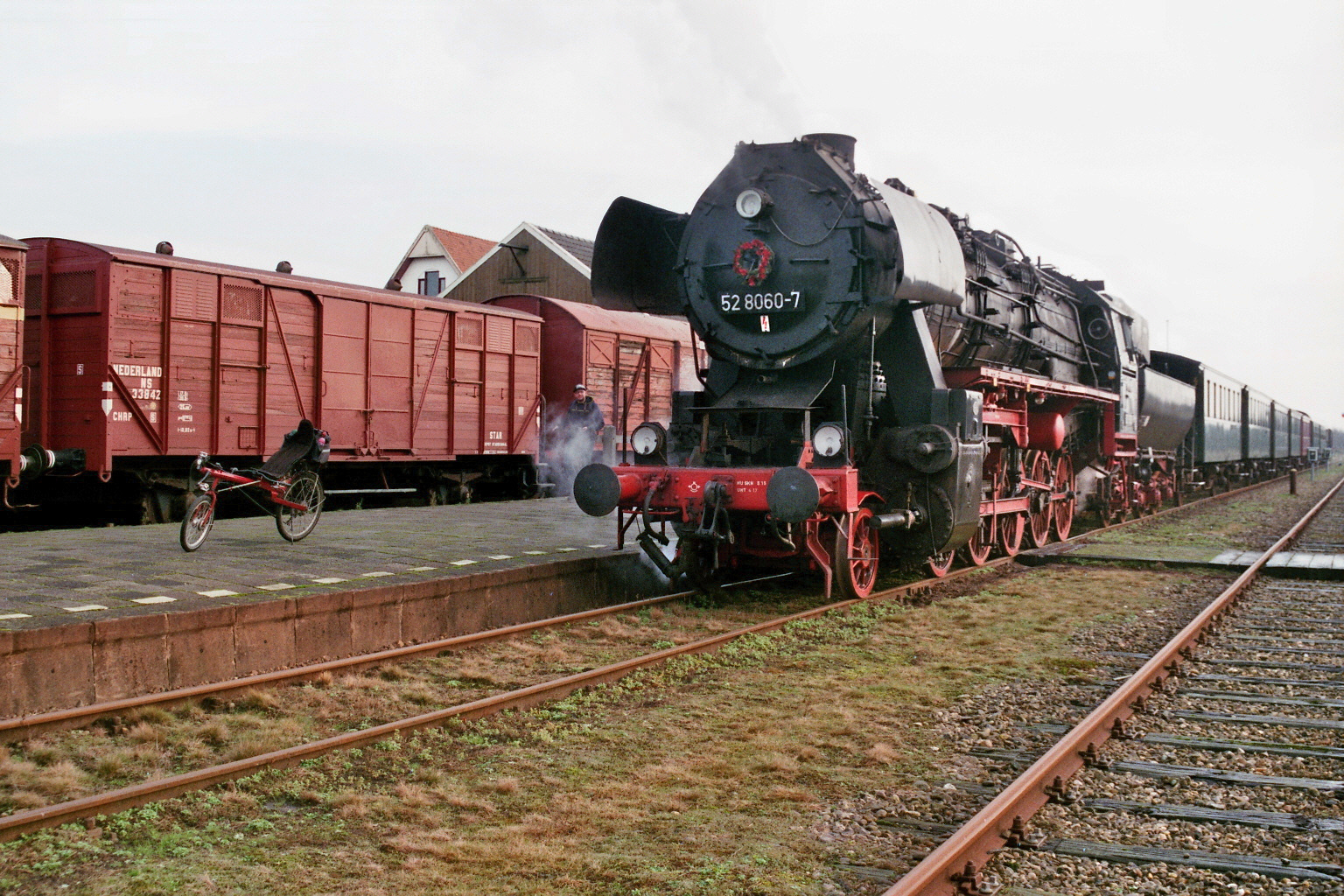 Dampflokomotiv 52 8060 7 und Sinner Liegerad in Stadskanaal