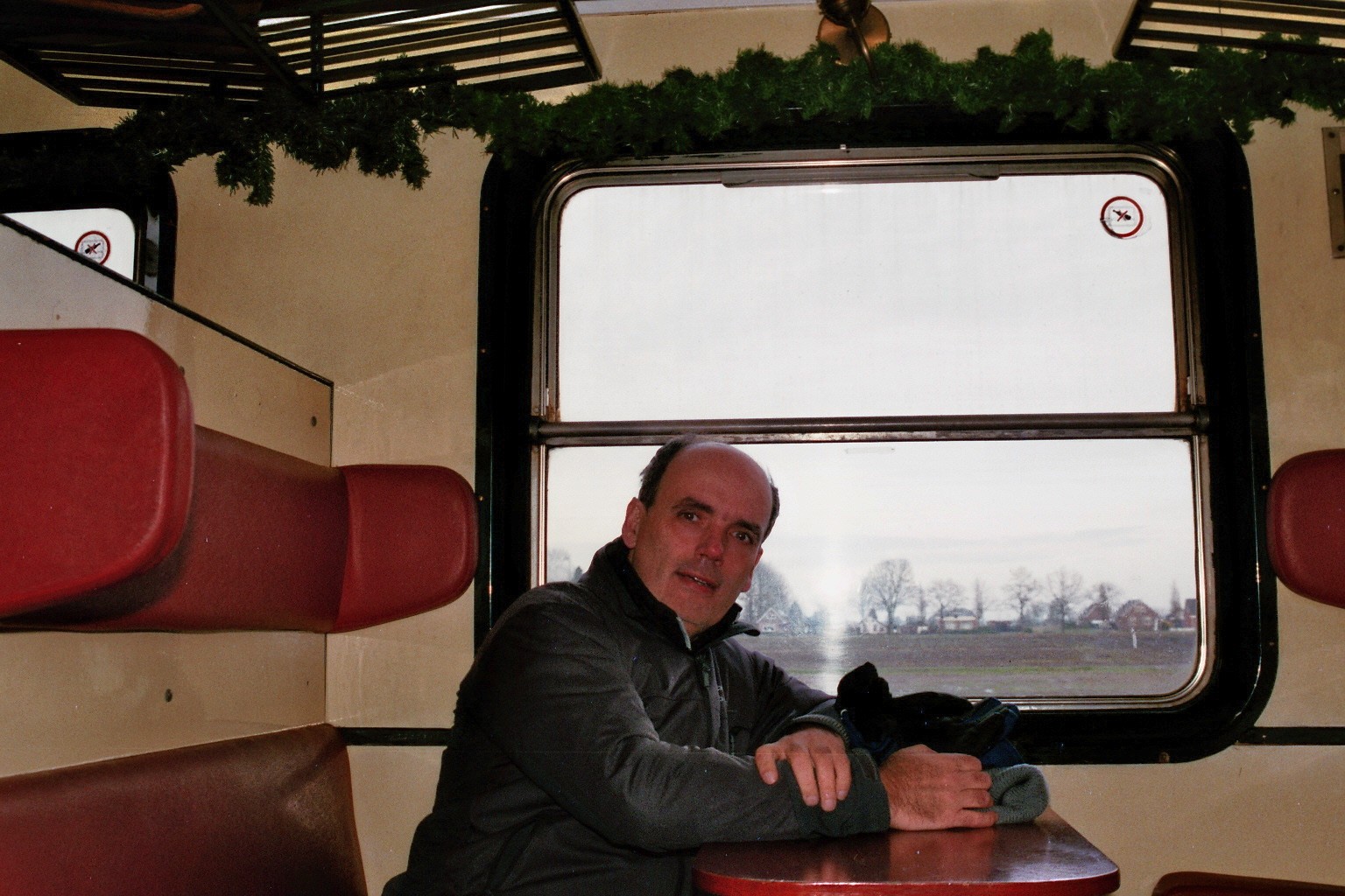 In het Raborijtuig van Museumspoorlijn STAR op weg van Stadskanaal naar Veendam.