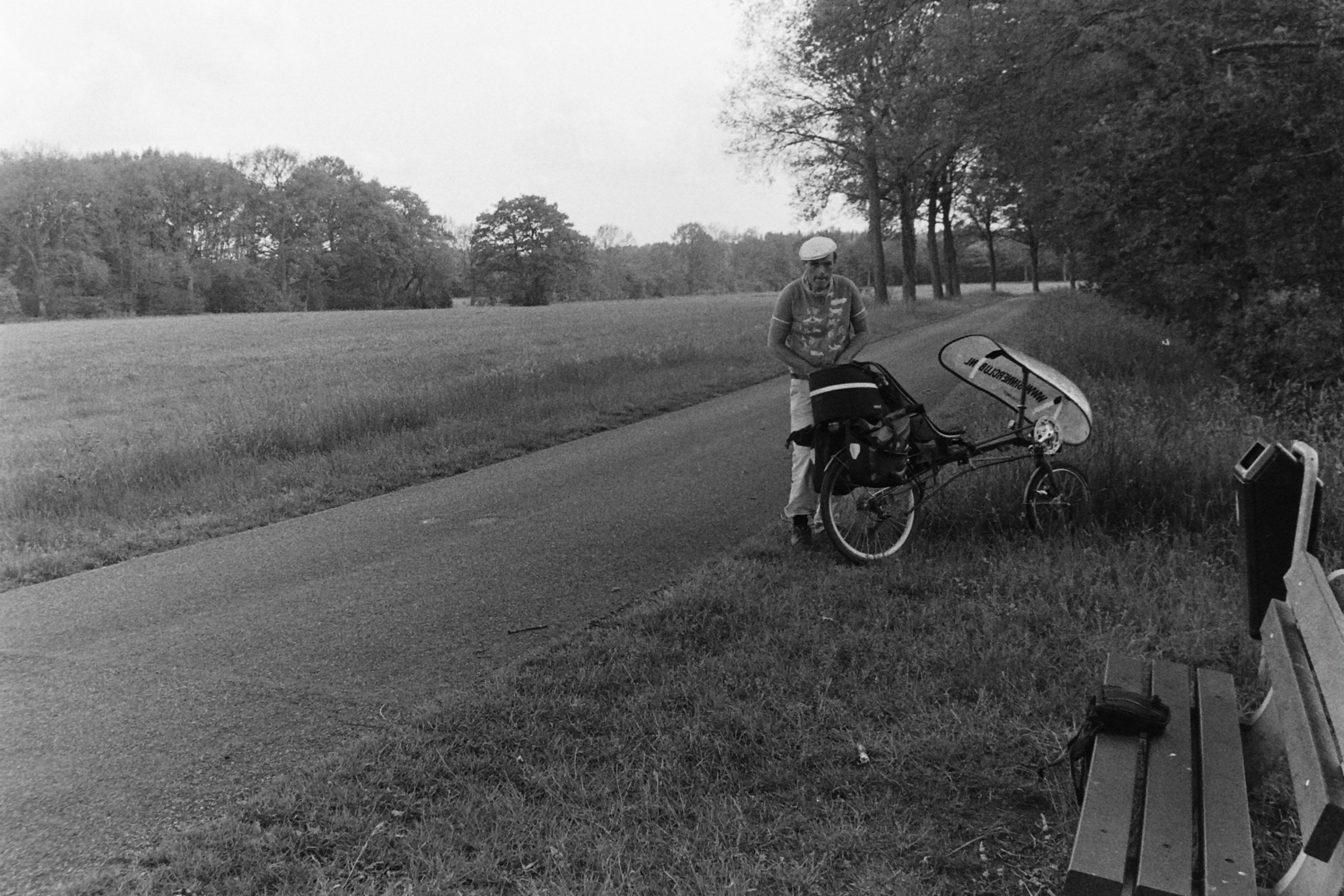 analog, Canon Eos 300, cycling, drenthe, filmphotography, Ilford HP5 Plus 400, Liegerad, ligfiets, recumbent, recumbent bicycle, Sinner Record, Zwart/wit- Albums